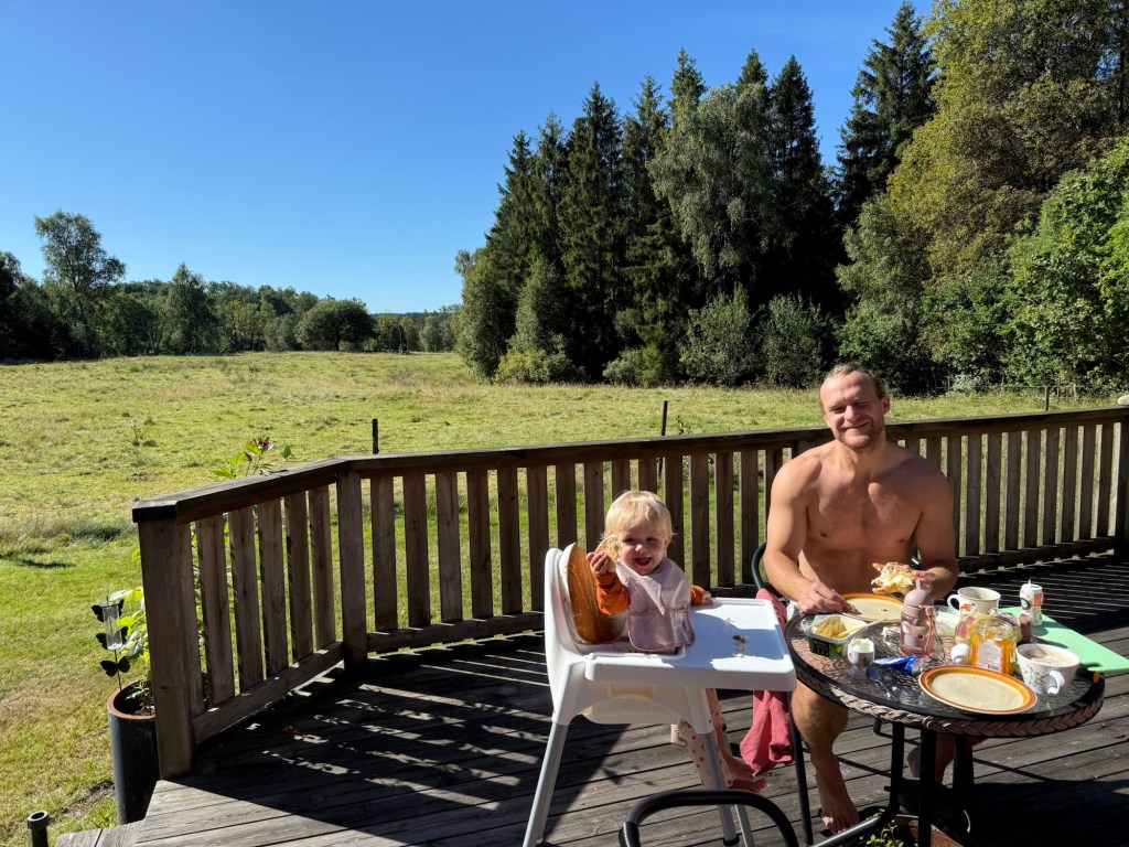 Vi har i allafall haft en helt underbar sommar. Vi har haft vänner på besök från Madrid, firat Soliana som fyllt 1 år och nu hela augusti är vi på västkusten och bor i Amadeus mammas sommarstuga. Här har vi bott varje sommar sedan vi blev tillsammans. Finns inget mysigare än att dricka en morgonkaffe på altanen och blicka ut över ängen. Eller åka till sjön och ta ett kvällsdopp.